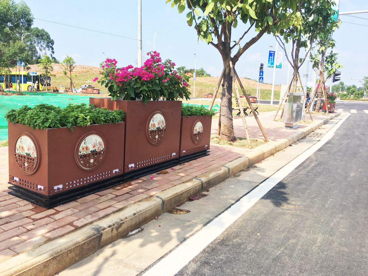 組合花箱有標(biāo)準(zhǔn)尺寸,但標(biāo)準(zhǔn)尺寸并不適合每一條街道。因此在實際生產(chǎn)中,廠家會根據(jù)場景的特點,調(diào)整尺寸,使得花箱的尺寸適應(yīng)場景。實際上,街道上樹與樹之間的間距就不同,比較好的就是量好尺寸定制。