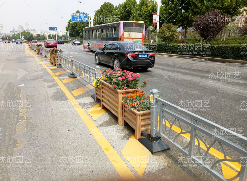 護欄花箱不同于組合花箱,護欄花箱具有道路隔離景觀作用。組合花箱的作用集中在街道景觀。護欄花箱一般由護欄和花箱組成,花箱以PVC、鋁合金為主,護欄以鋅鋼、鋁合金為主。