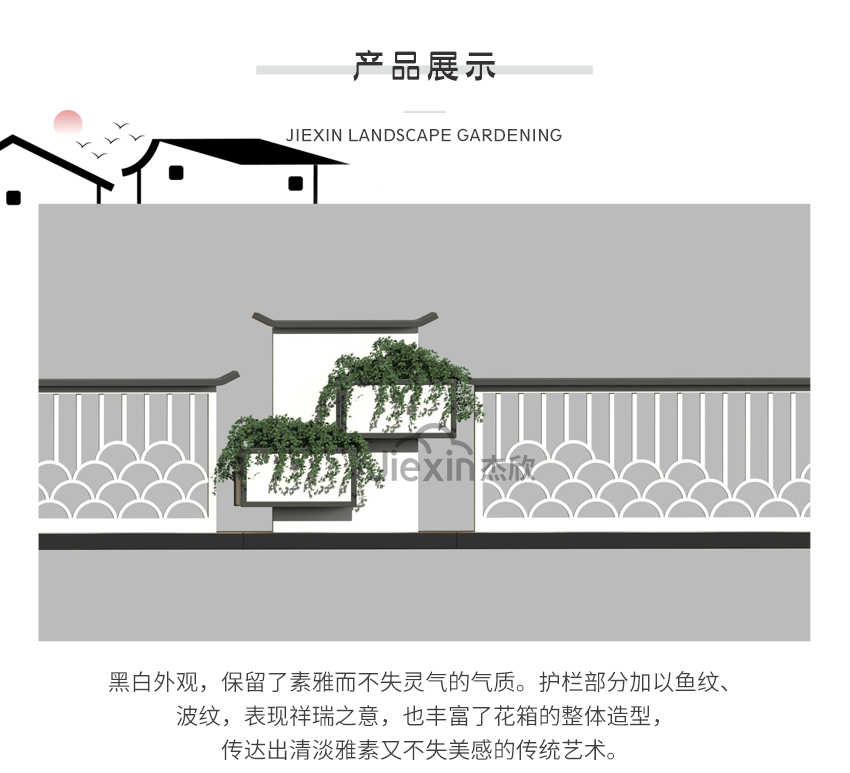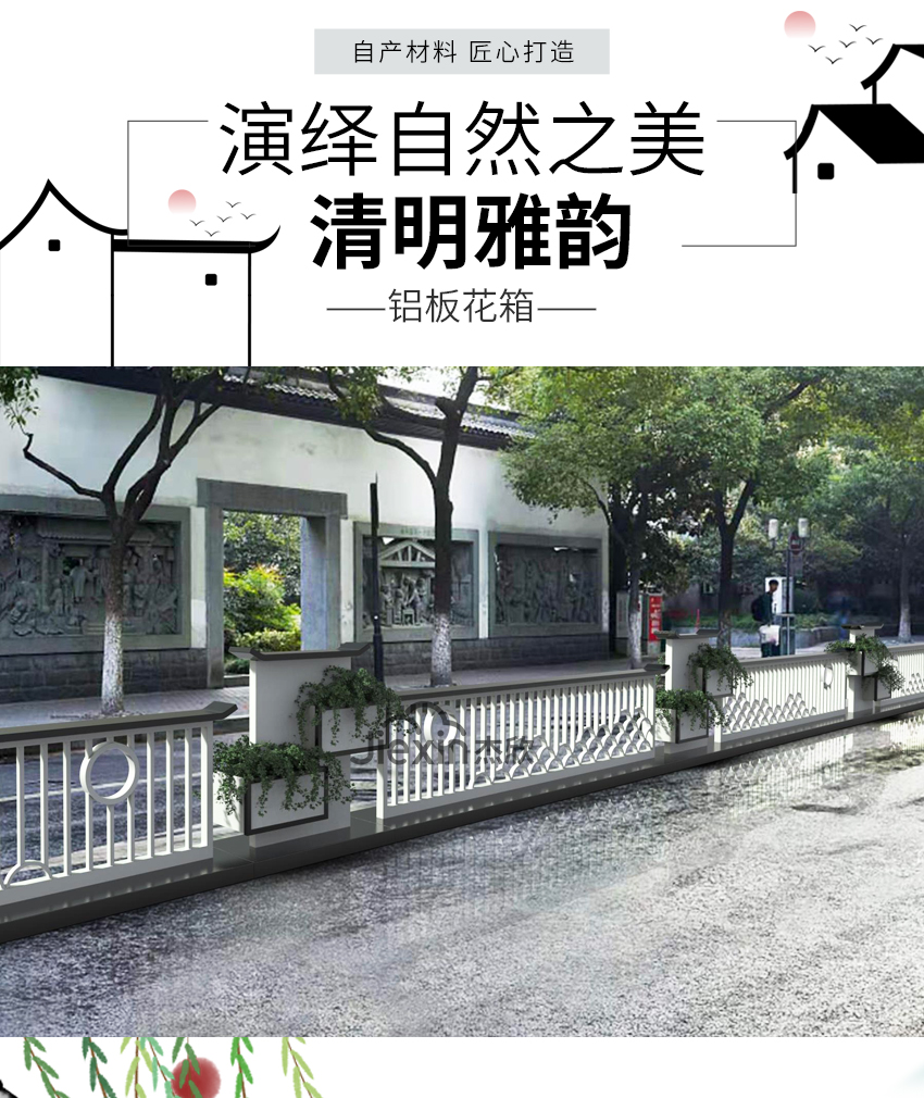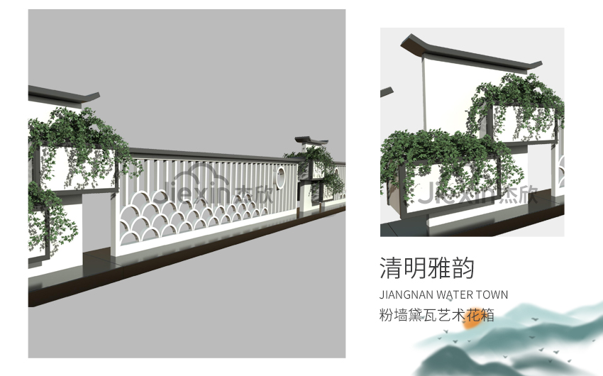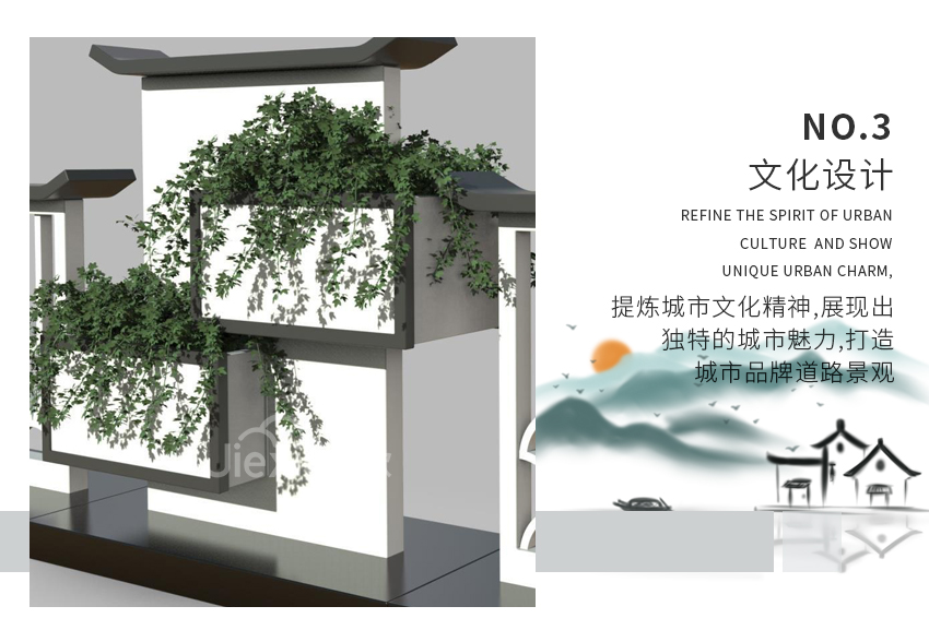 設(shè)計(jì)師從江南古建的線條與構(gòu)思中獲得靈感,以簡潔明朗的線條、溫和如水的氣質(zhì),通過色彩濃淡、光影變化、長短對照的綜合考量,平添了幽雅靜謐又怡然自然的道路空間美學(xué)。