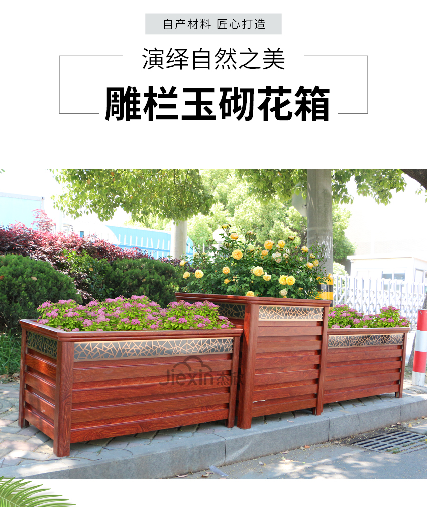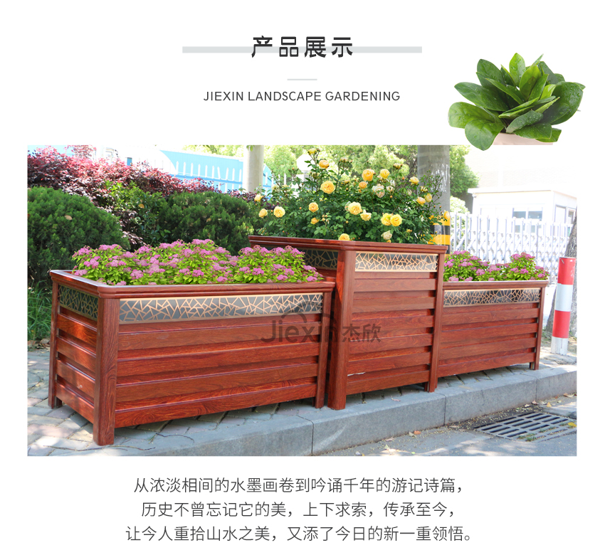 紅木色鋁合金花箱讓人想到城市的文化、想到古城、朱門。