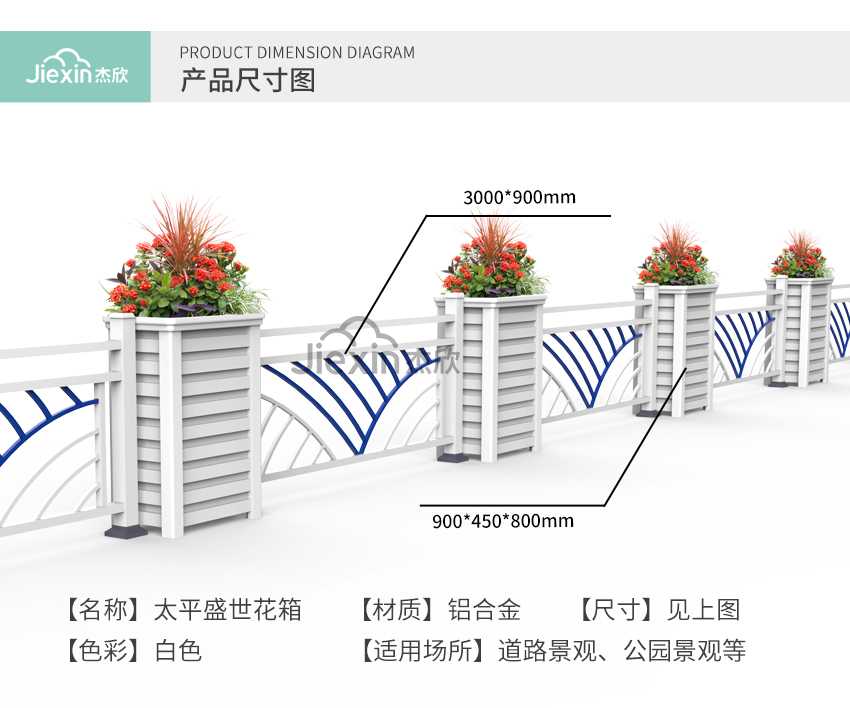 白色花箱護(hù)欄具有提亮街景效果,而且美觀大氣。