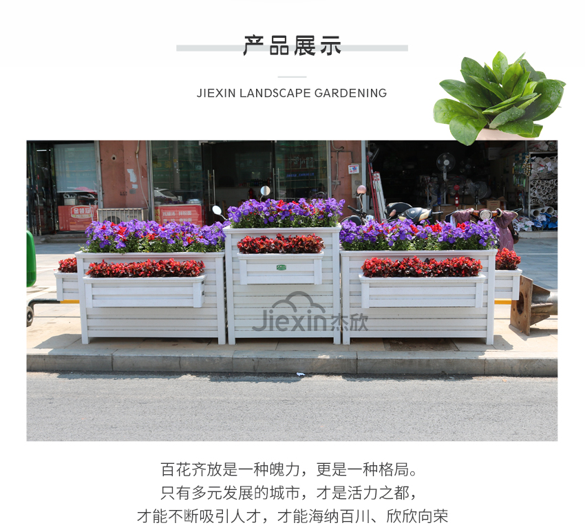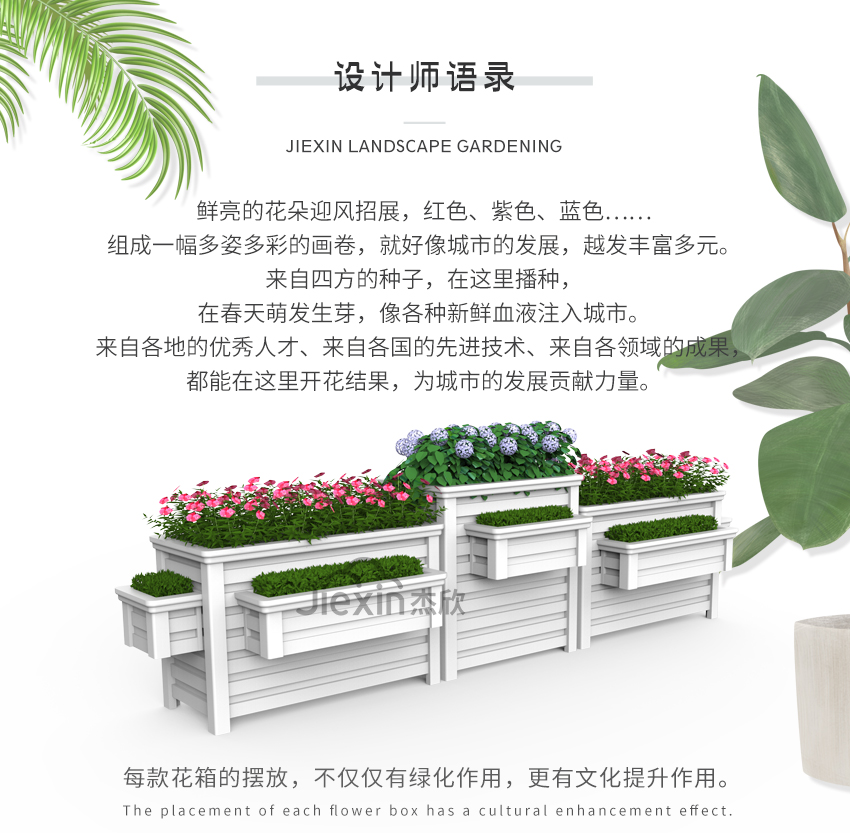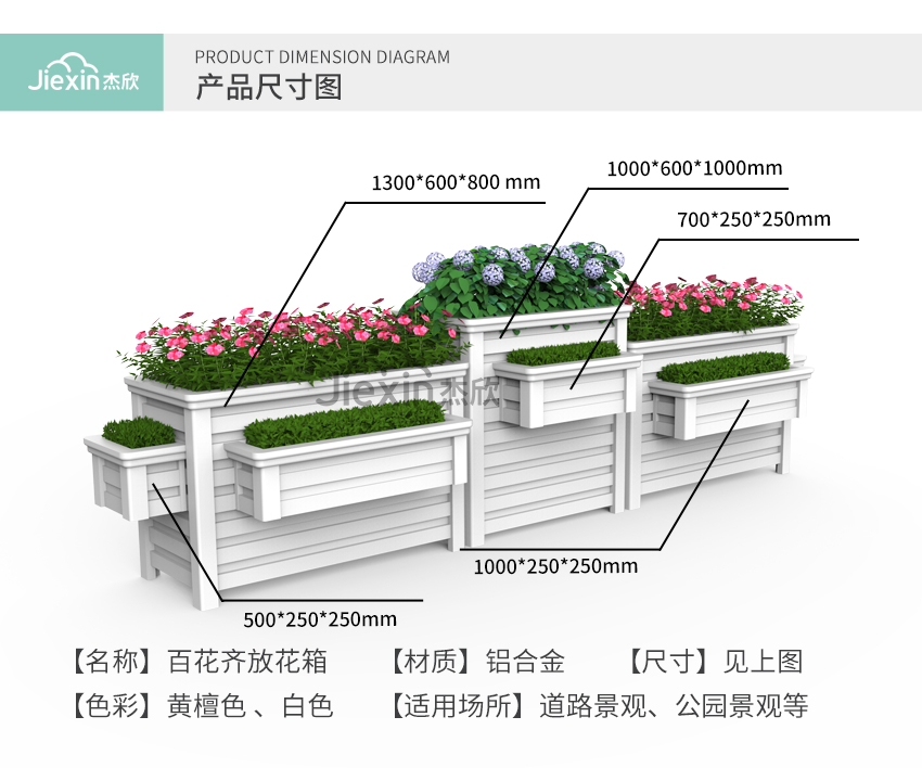 組合花箱的材質(zhì)是鋁合金,防腐耐磨、堅(jiān)固耐用,能夠在戶外使用二十年。