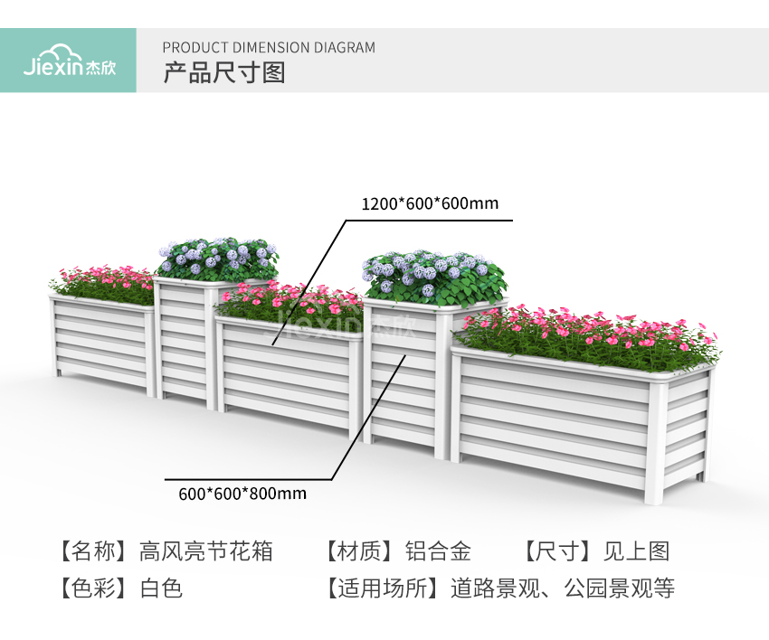 白色組合花箱更是組合花箱中的佼佼者,白色花箱具有鮮明的景觀提亮效果。