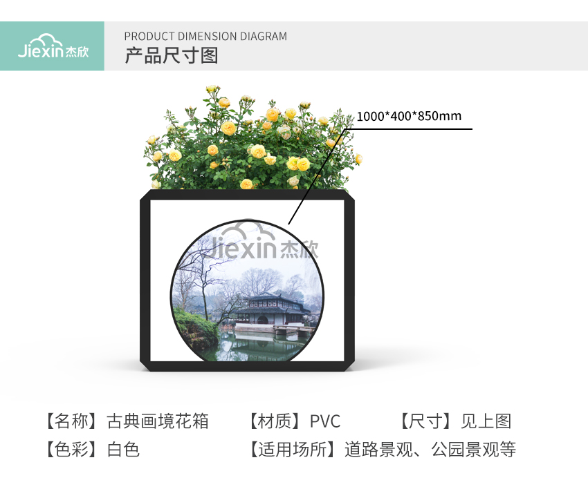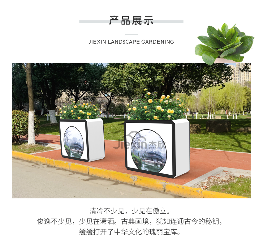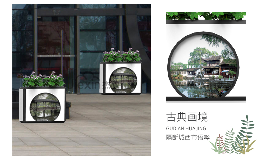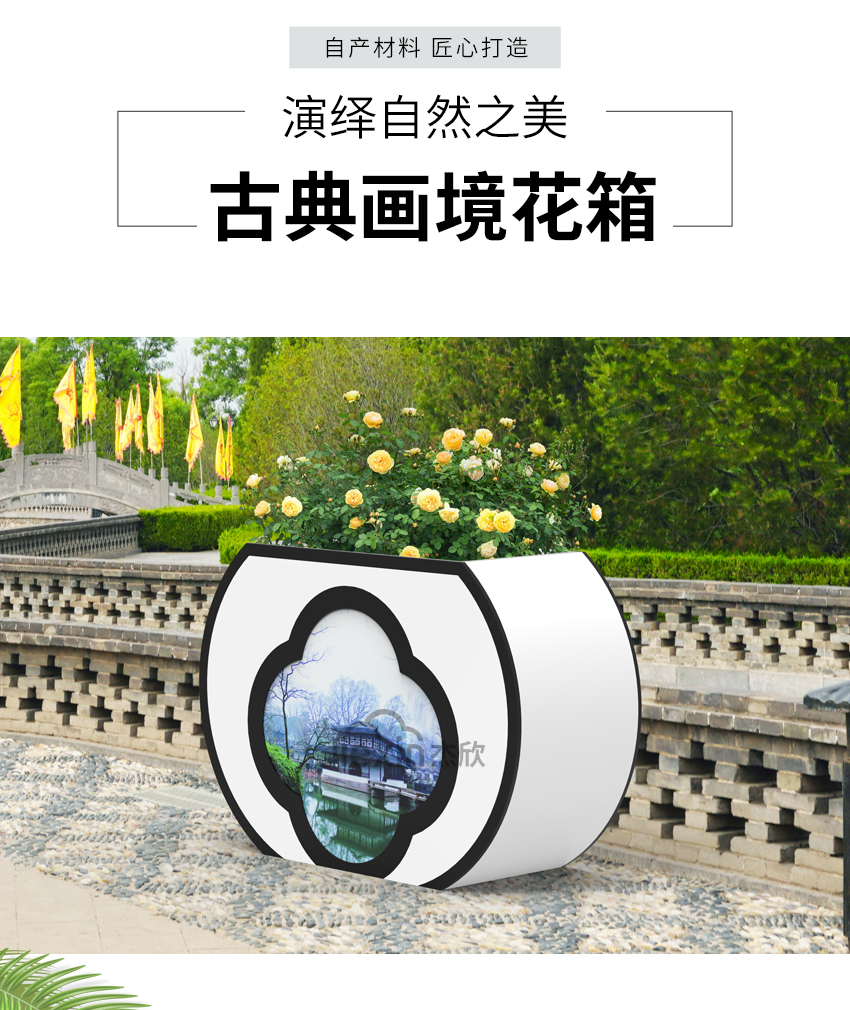 這一款花箱設計元素來源于蘇州園林