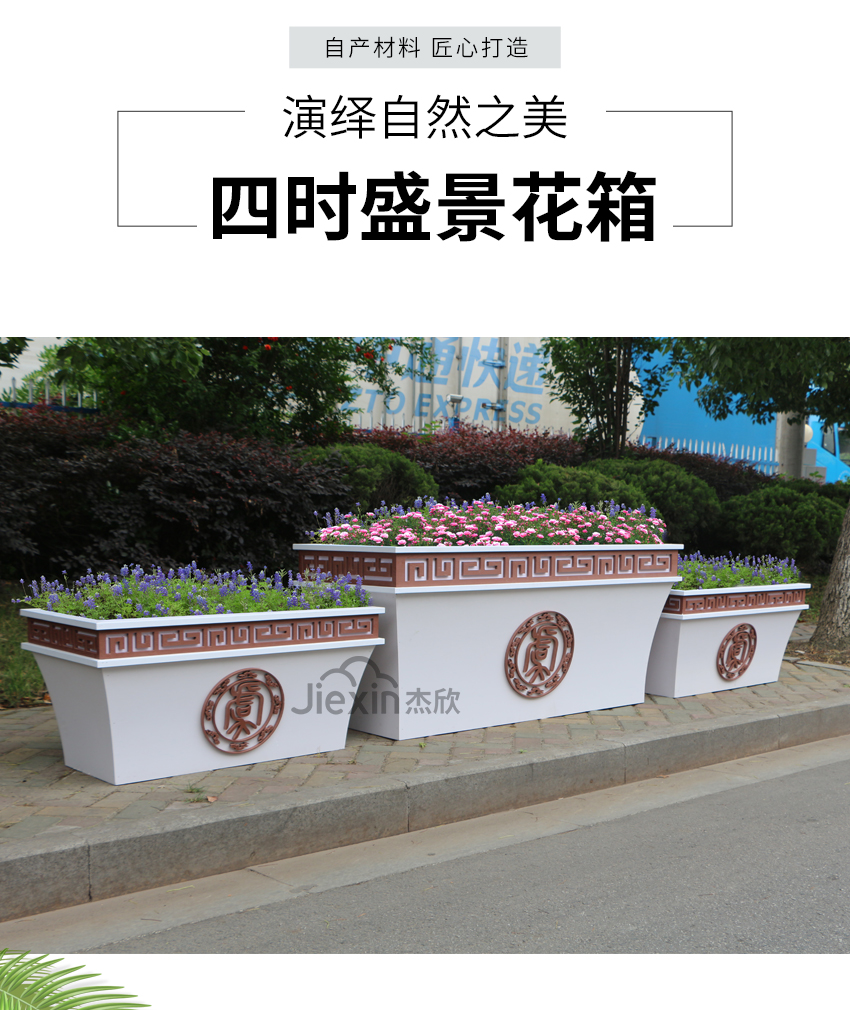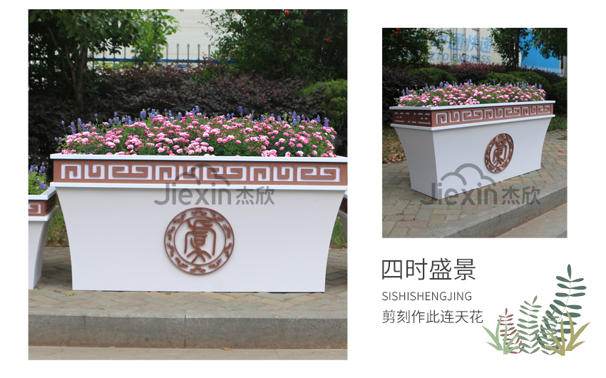 既有常規(guī)的組合花箱,也有造型別致的組合花箱