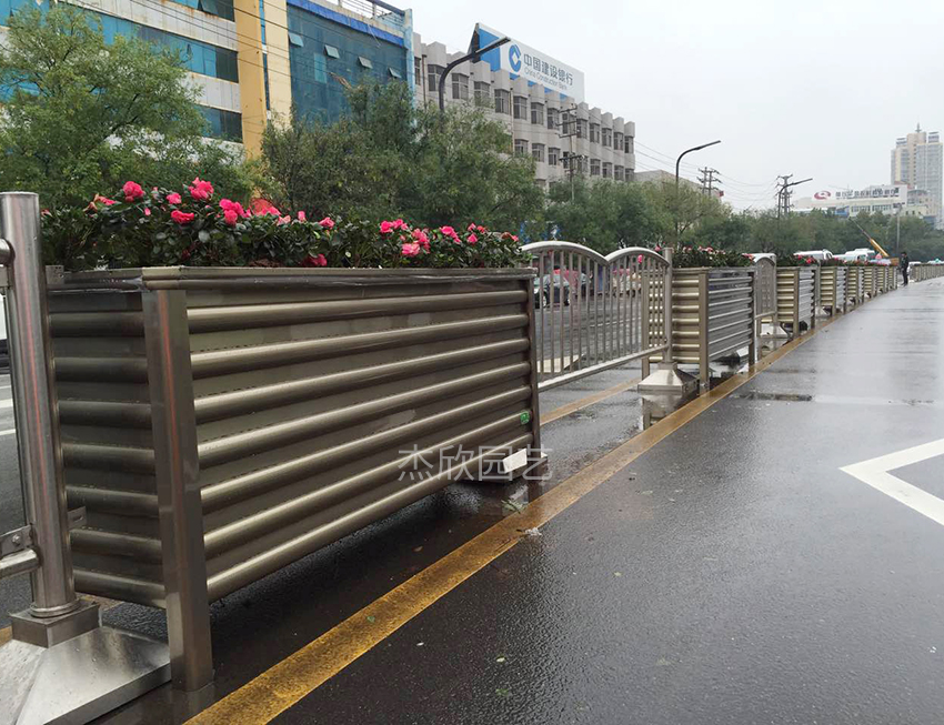 護(hù)欄花箱比其他花箱更易受環(huán)境的侵蝕,護(hù)欄花箱完全暴露于戶外環(huán)境中,沒有遮蔽,道路粉塵對花箱也有一定的磨損。所以護(hù)欄花箱在材質(zhì)的選擇上,更需要謹(jǐn)慎。鋁合金護(hù)欄花箱是目前最好的選擇。
