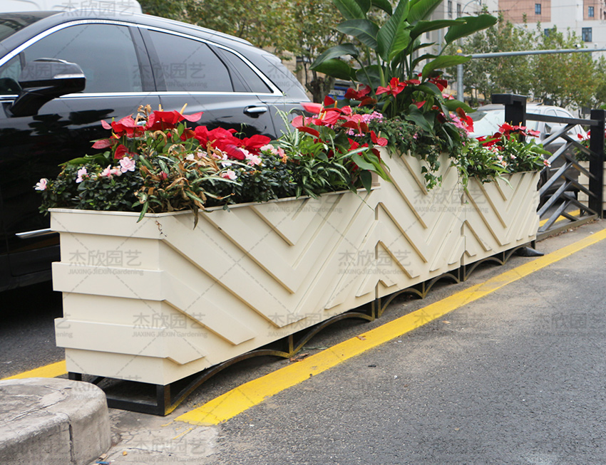 相較鋁合金花箱、PVC花箱,鈑金花箱有自身突出的優(yōu)勢。鋁合金花箱,造型簡潔,美觀性不足,鈑金花箱同屬金屬類花箱,卻將造型之美發(fā)揮淋漓盡致。PVC花箱雖美觀靚麗,使用年限卻不長,鈑金花箱充分展現(xiàn)了金屬產(chǎn)品耐腐蝕、耐磨損性能,可用二十年。