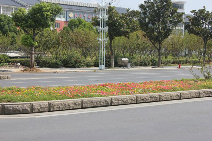 中心城區(qū)隔離帶寬度通常在80cm,隔離花箱的寬度在50cm左右,給隔離帶預(yù)留足夠空間,保證車道不夠影響。隔離花箱的高度在90cm左右,太高影響視線,太低行人易翻越。
