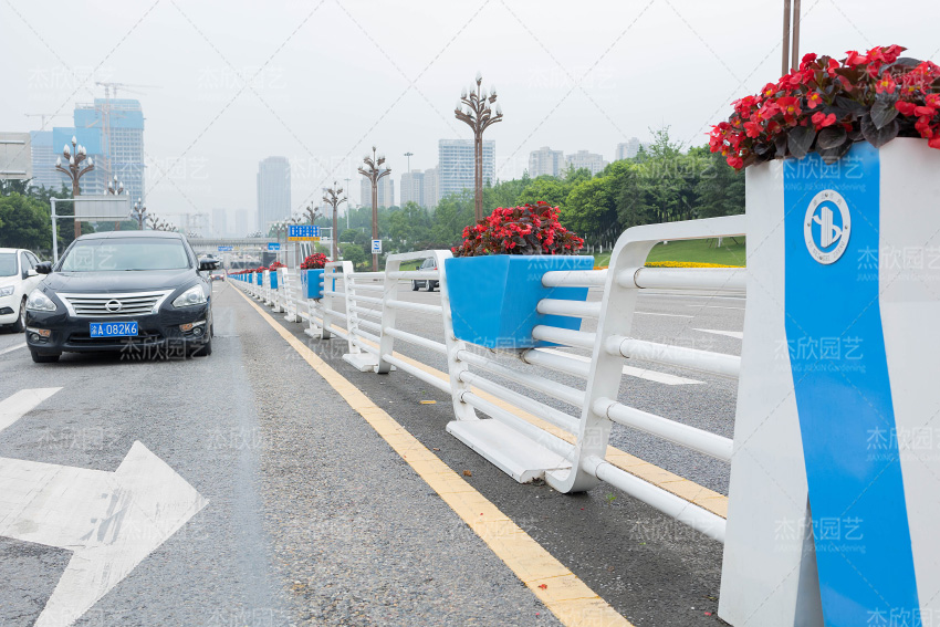 藍色船只在巨大海浪下一往無前,比喻城市在發(fā)展過程中心懷大志、勇往直前。這樣一幅充滿精神力量的畫卷,由精心打磨的花箱和護欄構成。花箱在道路場景中不僅有綠化作用,更有文化提升作用。乘風破浪花箱展現(xiàn)出城市發(fā)展中的精神力量、價值影響。