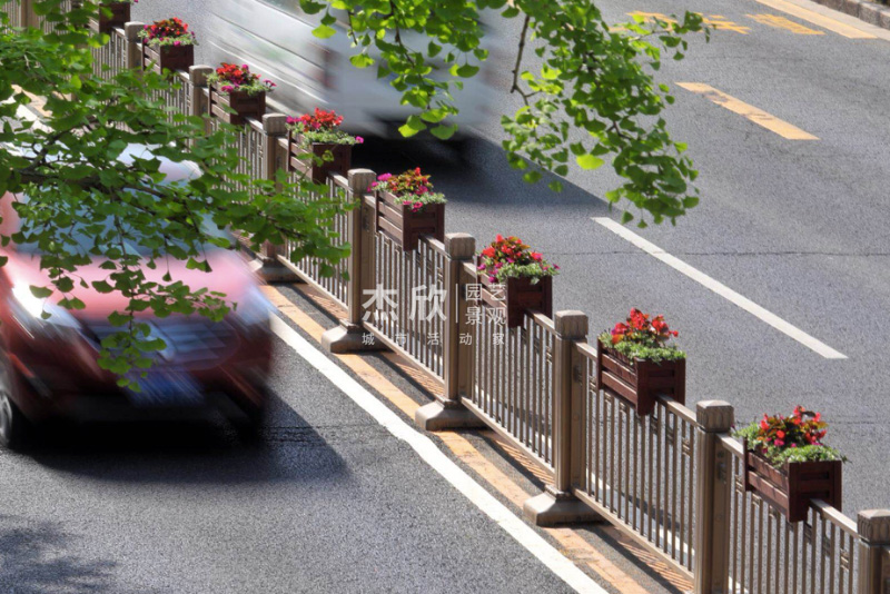 花箱護(hù)欄則可以用在隔離帶較窄的路段?;ㄏ渥o(hù)欄以花箱和護(hù)欄組合形式呈現(xiàn),其中包括懸掛的花箱護(hù)欄,就更提高空間綠化率。