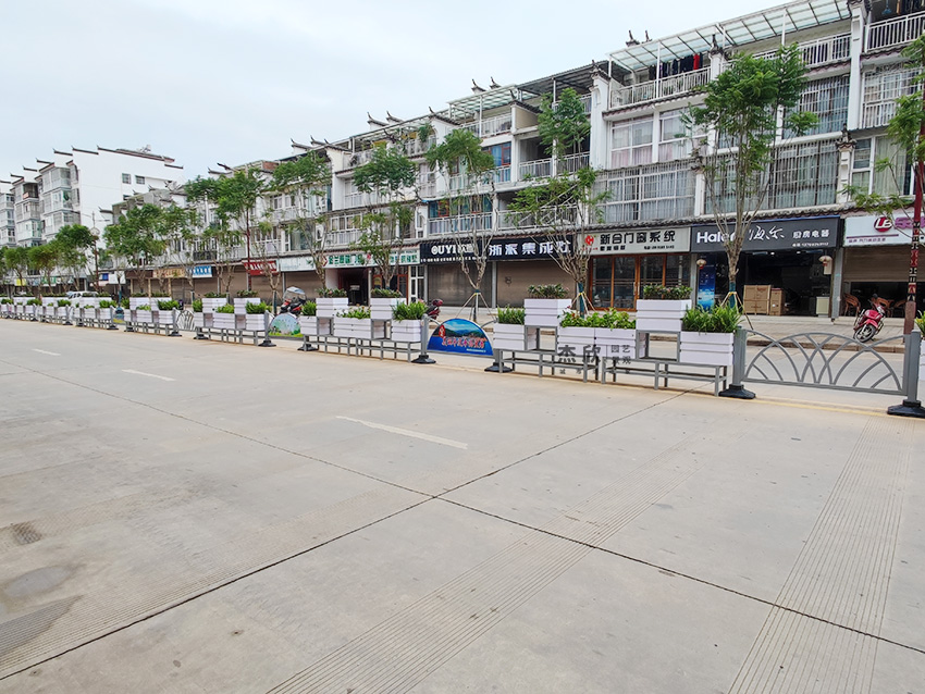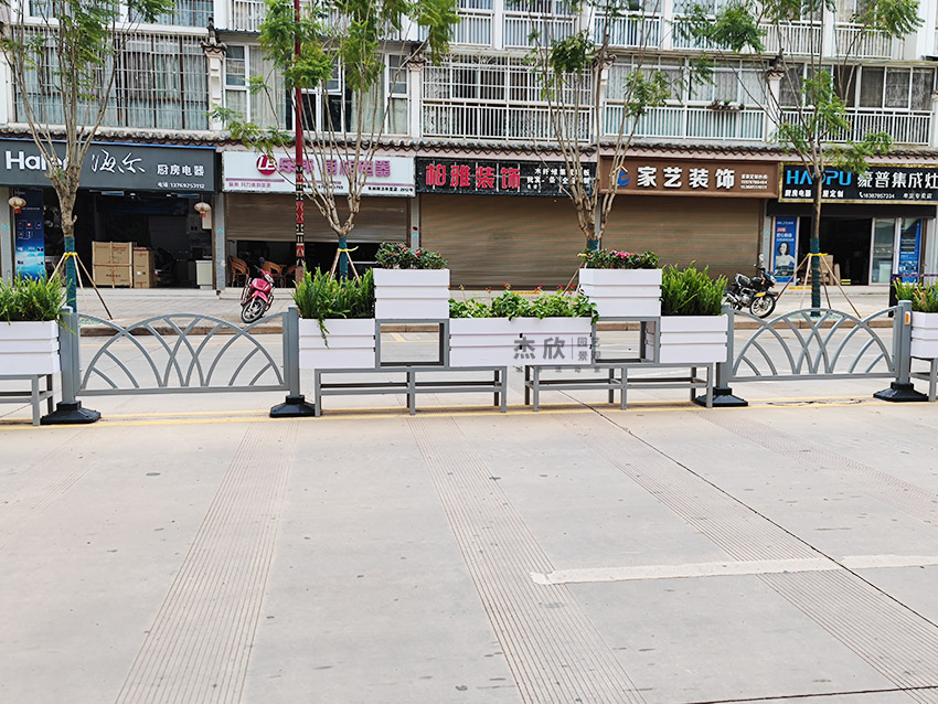 pvc品字形組合花箱護(hù)欄非常適合城市道路中央隔離帶、機(jī)非隔離帶。