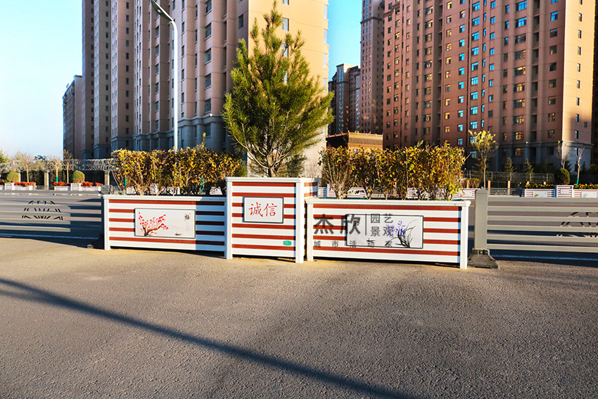 道路組合花箱外觀設(shè)計(jì)采用uv打印技術(shù),實(shí)現(xiàn)景觀定制需求,表現(xiàn)城市文化脈絡(luò)。