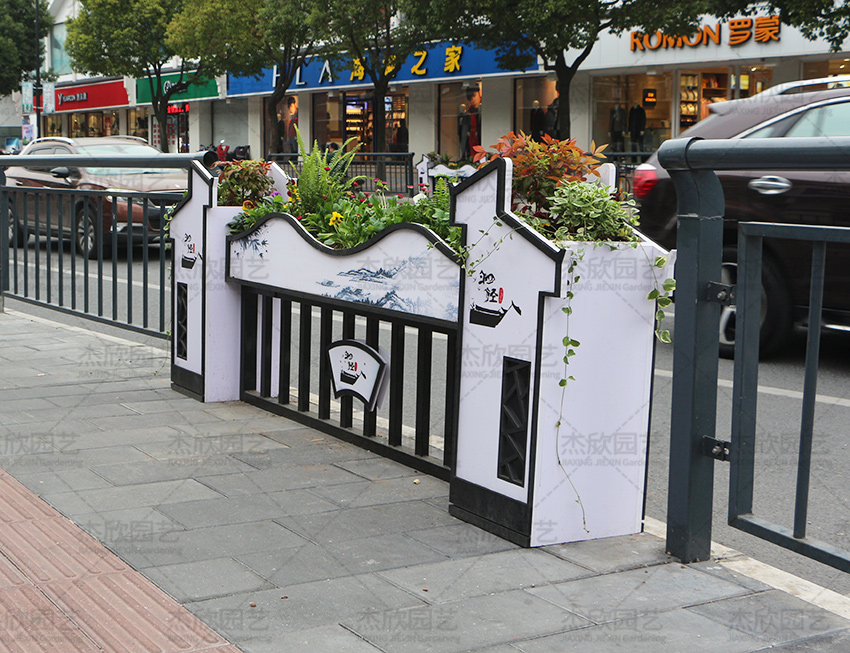 pvc護(hù)欄花箱是道路常見(jiàn)的花箱款式。