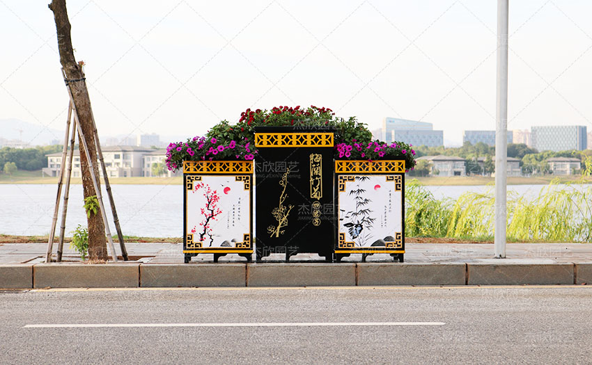 組合型花箱在不同的場景中有不同的款式選擇?可以選擇簡潔款,適合自然生態(tài)的場景;也可以選擇貼花款,偏重文化宣傳和時政宣傳。