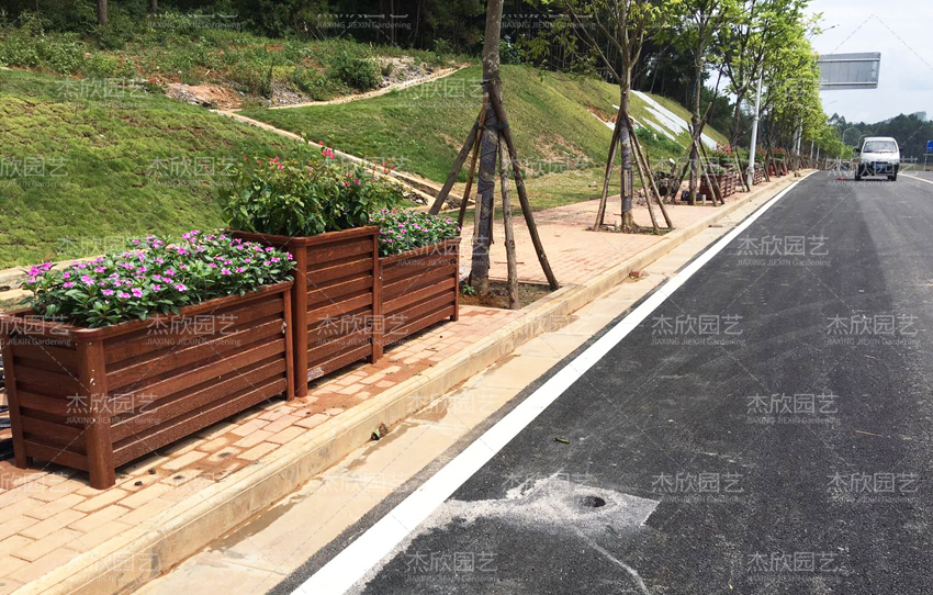 移動(dòng)式組合花箱主要擺放在城市街道上。道路邊的街道,沒有行道樹的點(diǎn)綴,可以通過擺放花箱的方式,增加草花的效果。