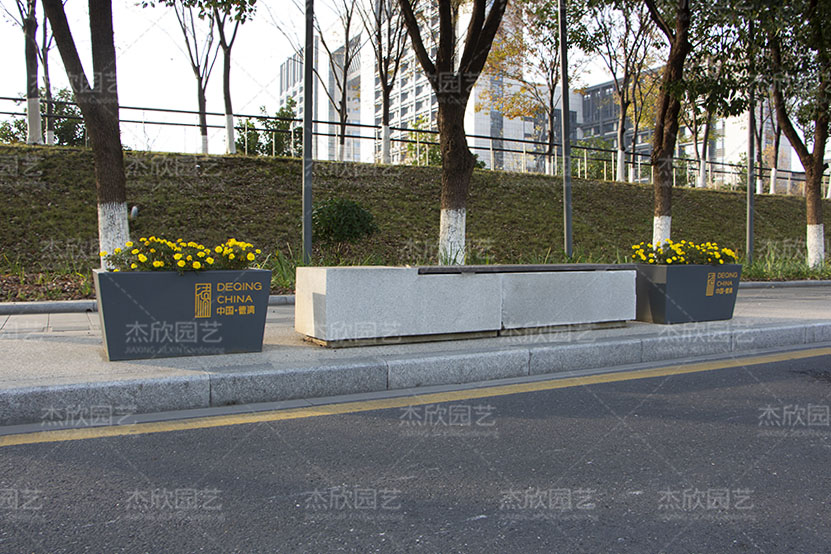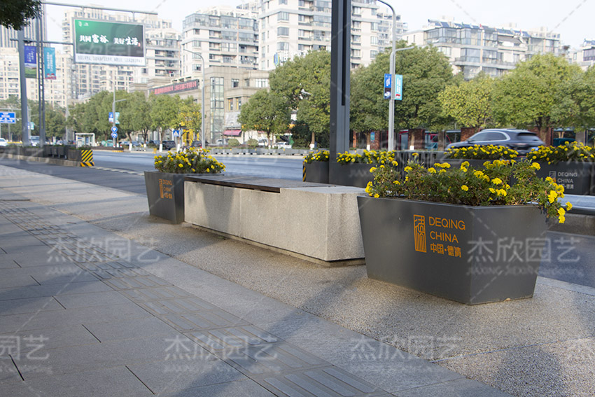 不銹鋼成品花箱經(jīng)典款,選取的是深色漆面,燙金文字,大氣磅礴,氣象萬千,現(xiàn)代城市風(fēng)格撲面而來。