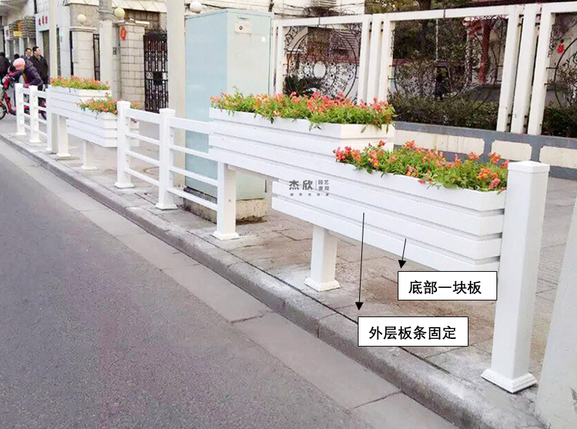 首先是道路隔離花箱護(hù)欄中的PVC材質(zhì),PVC是由板條拼接而成,一般來說,大家看到的常規(guī)PVC花箱,都是板條固定要一個板上,因此側(cè)面看有凹凸面,凸出來的就是板條固定上去。