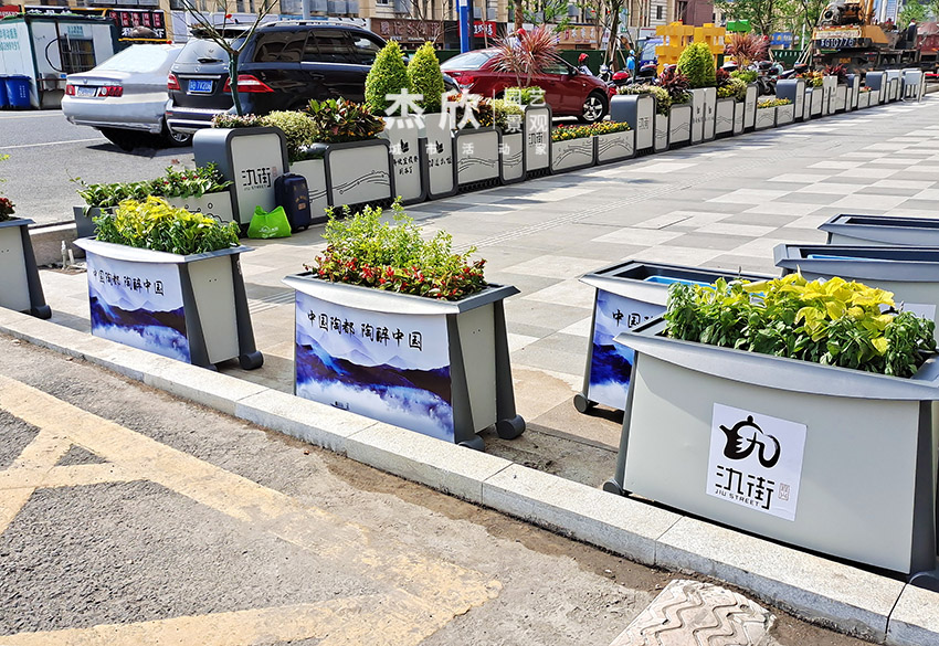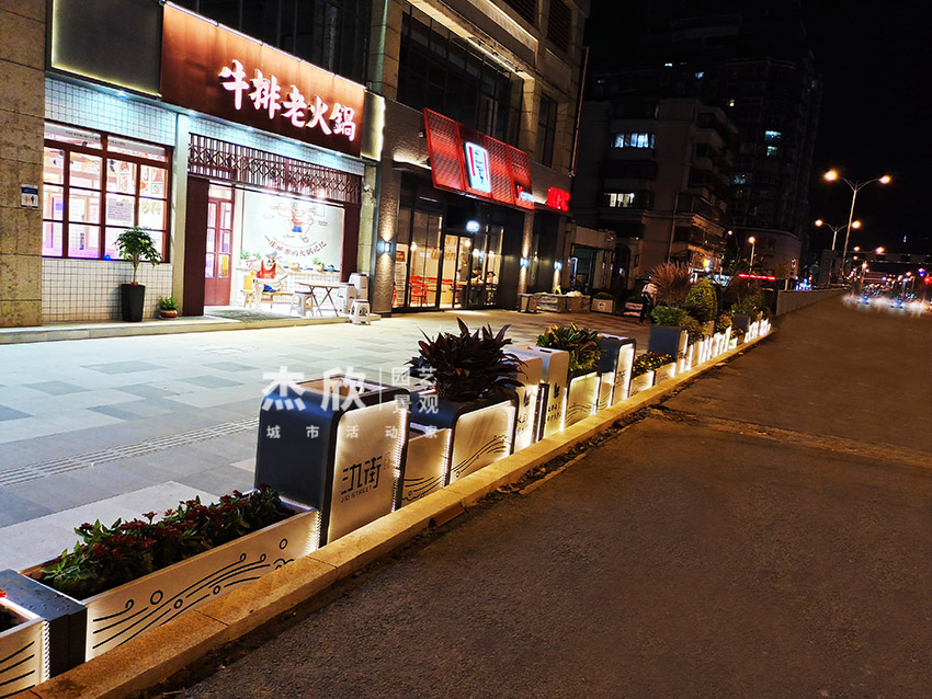 氿街街區(qū)景觀以花箱和座椅構(gòu)成,能夠在場景中完成美化提升工作。山水元素作為此次方案的基地,用文化喚醒人們對宜興歷史的記憶。