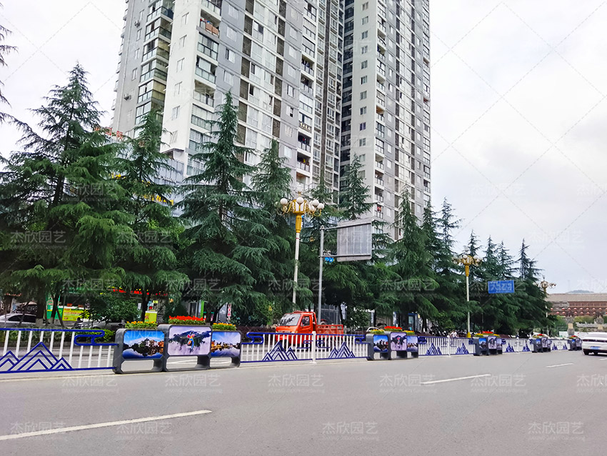 道路花箱護(hù)欄,既提供了百花的承載體,也匹配了城市道路景觀的要求。