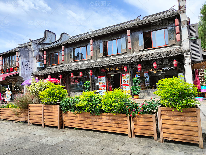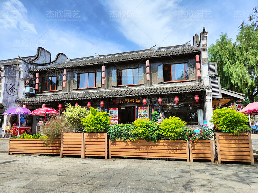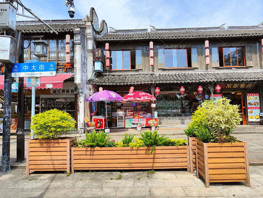 一抹亮色出現(xiàn)在古鎮(zhèn),伴隨花箱出現(xiàn)的還有鳥語花香。木紋色花箱清新自然搭配舒展的花木,一幅古鎮(zhèn)悠然圖徐徐展開。