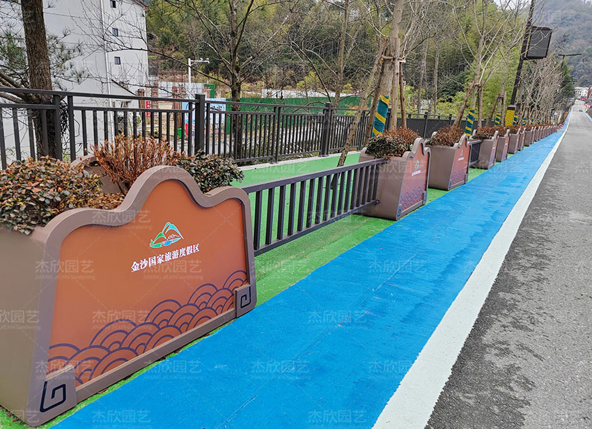 山清水秀花箱定位山水景區(qū),以流暢的山脈圖形展現(xiàn)山河大地,顏色外觀設(shè)計(jì)醒目,具有標(biāo)識特點(diǎn)。