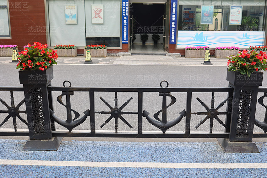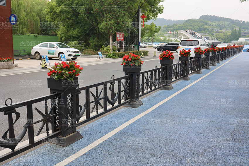 道路隔離護欄便于景區(qū)管理,優(yōu)化出行,草花布置,有利于提升場景的美觀度。