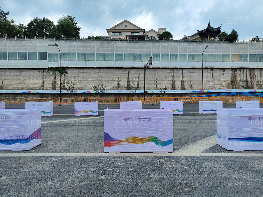 “潮涌”主題花箱以線條藝術凝練出亞運精神,包含著杭州文化與亞運精神的結合,代表著第十九屆亞運會的精神凝聚力。