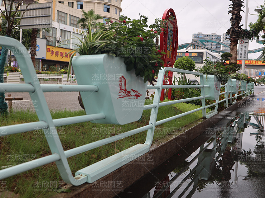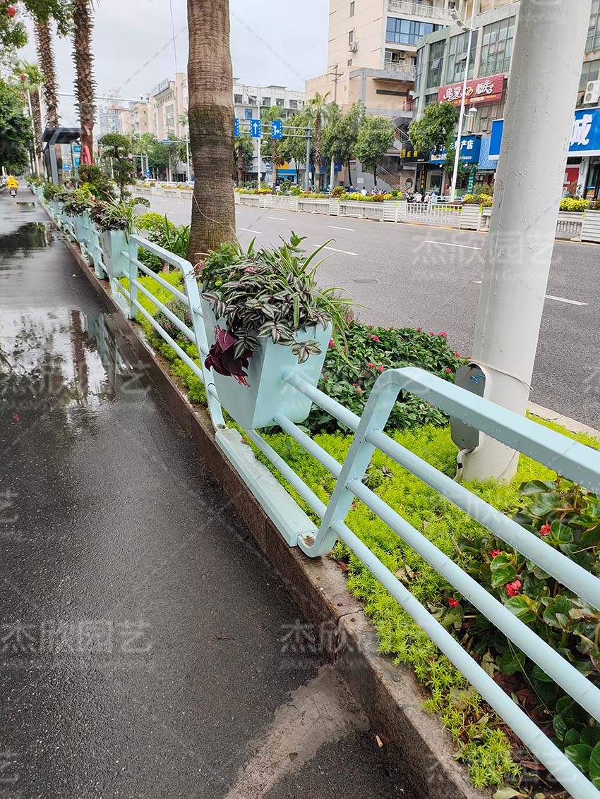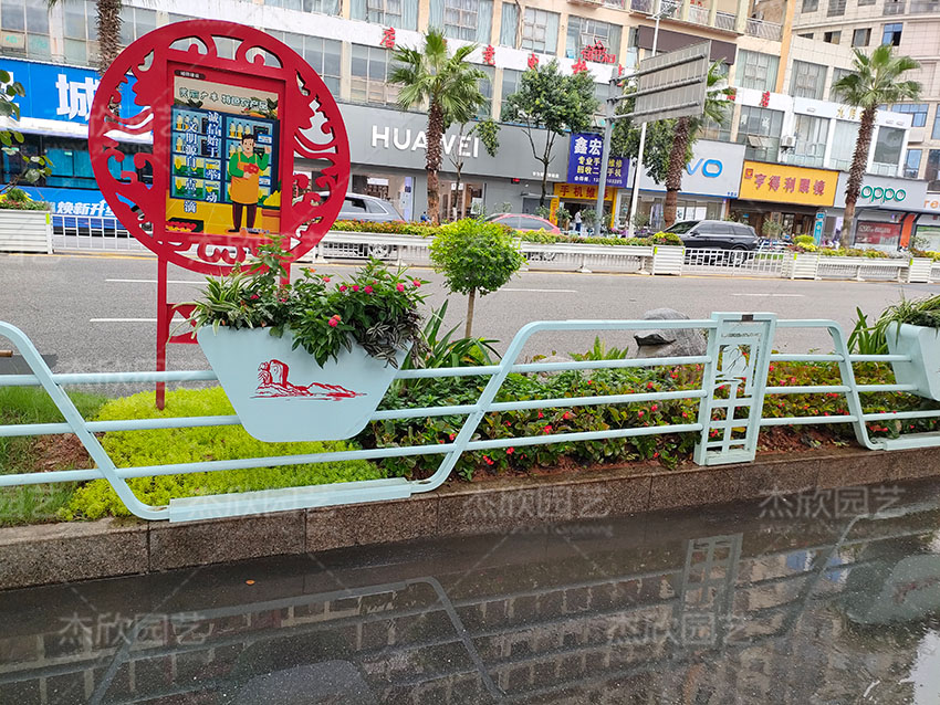 城市的風(fēng)貌與城市發(fā)展息息相關(guān)。上饒城區(qū)道路隔離帶采用“乘風(fēng)破浪”經(jīng)典款,用色貼合城市特色,天青色暈染出城市美景。