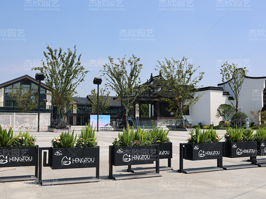 未來之城花箱與海寧硤石相遇,為商業(yè)街增添了國際范與地方特色,更添風(fēng)采。