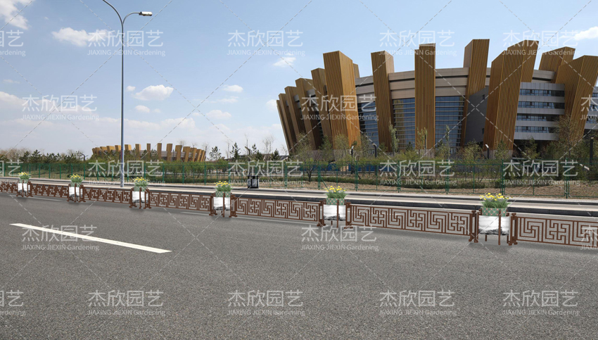 護欄的造型復雜,因為花箱四底腳的融入,顯得和諧