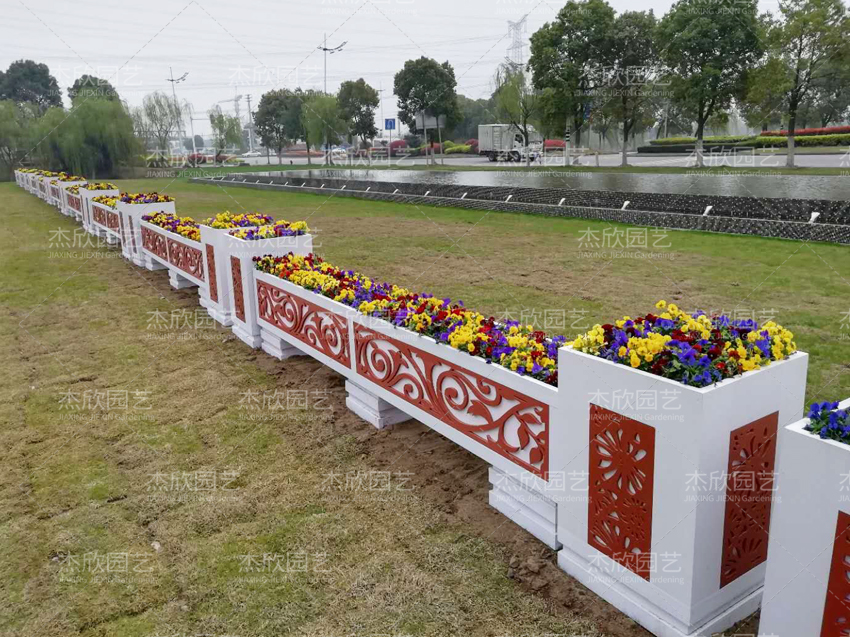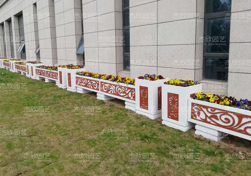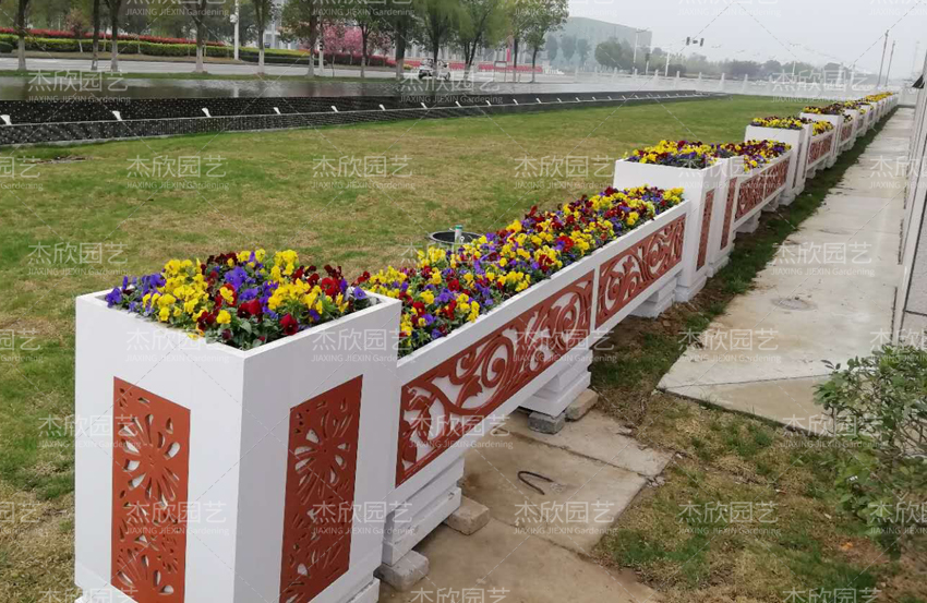 pvc花箱的柔韌性佳,加工性能強,能根據(jù)需要定制圖案。PVC花箱外部雕刻細膩,色澤一致,圖案美觀。適合道路美化工程。