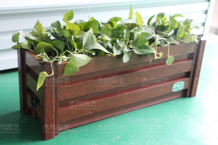 紅木色木紋的懸掛花箱