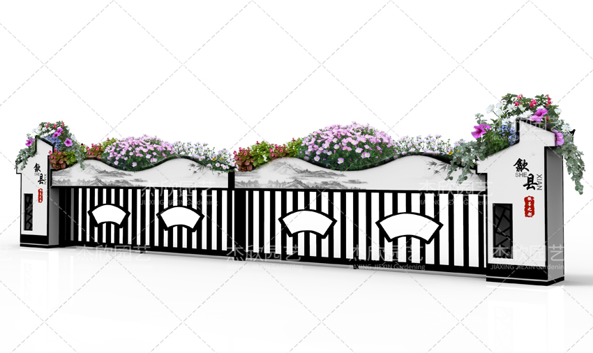 汲取徽派建筑藝術(shù)精華,來制作現(xiàn)代道路花箱,既保留了古典的韻味,又貼合現(xiàn)代審美。