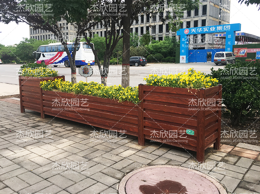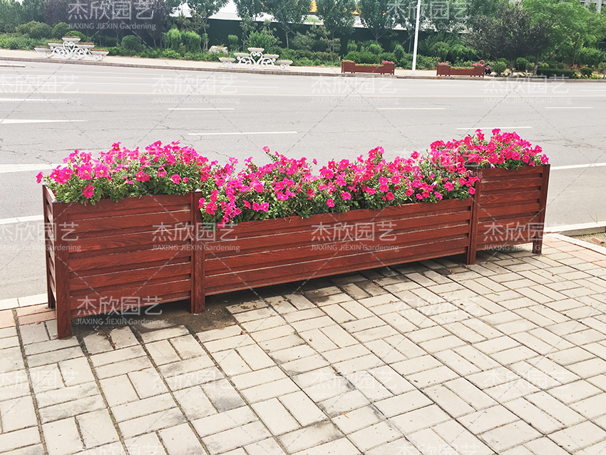 紅木色木紋花箱,整體非常美觀,自然清新、靚麗色彩