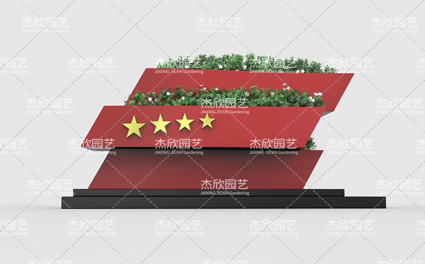 這款花箱大氣簡潔,將飄揚(yáng)的紅旗用幾何體表達(dá),造型感硬朗十足,整體造型設(shè)計表達(dá)了軍運會現(xiàn)代化賽事的特性,體現(xiàn)我國軍事的熱血、剛強(qiáng)。
