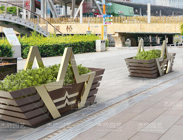 這款花箱線條硬朗,整體造型挺拔,符合軍人剛硬形象,體現(xiàn)軍旅文化,元素取自軍人臂章均有的麥穗、星星和臂章外型,與軍運會主題相呼應(yīng)。