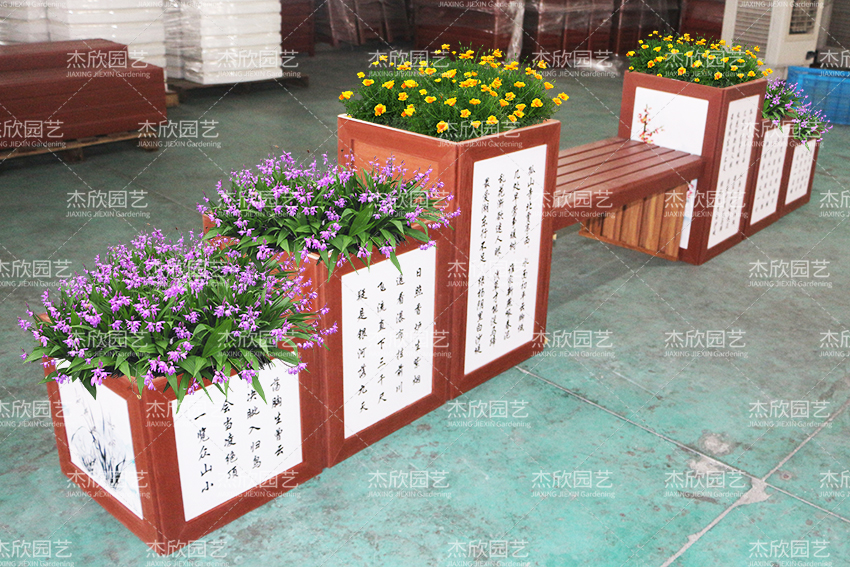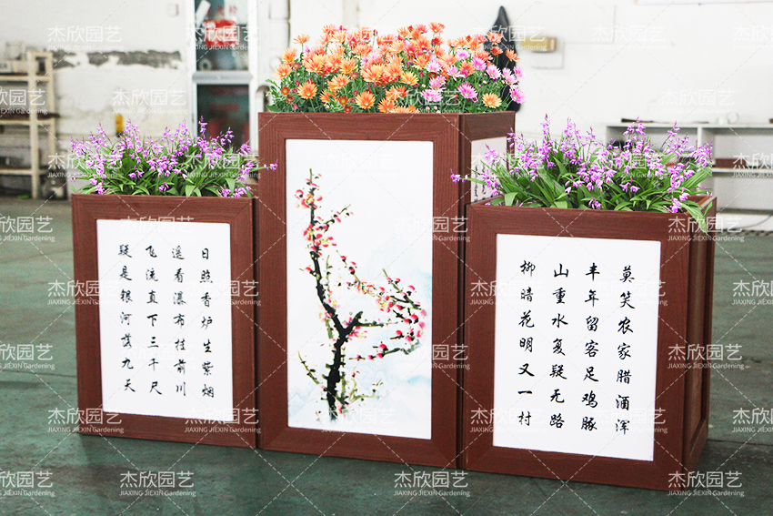 這款花箱的詩文可以定制,滿足不同場景的使用。花箱上的圖畫,不管臘月梅花、春日桃花、盛夏荷花、九月秋菊都可以選擇。花箱材料PVC材質(zhì),很耐用,箱體清洗便利,維護簡單。