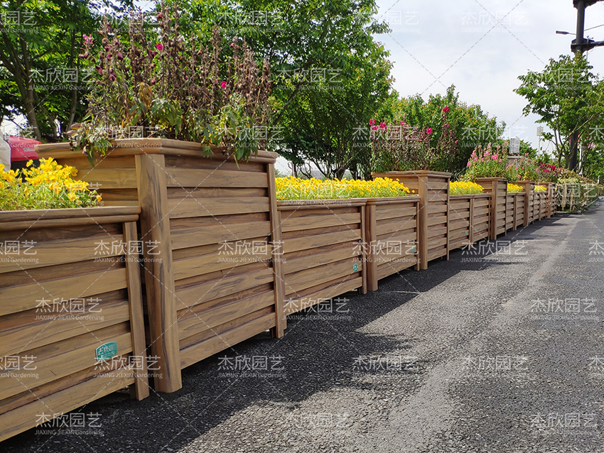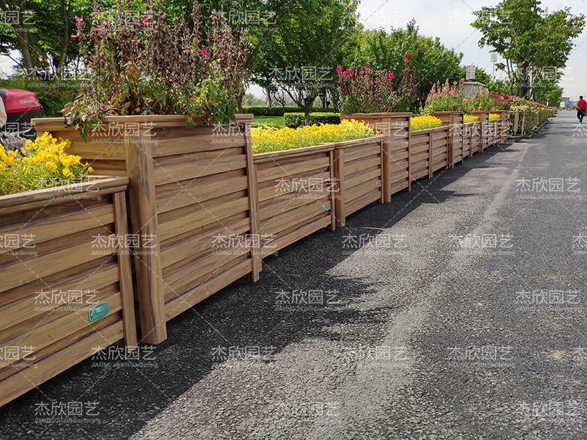 花箱項目延續(xù)生態(tài)建設(shè)的理念,挖掘當?shù)氐淖匀坏膶傩?,以和諧的黃檀木色花箱,營造出田園清新的道路風(fēng)景,一路花香在清風(fēng)中飄散。