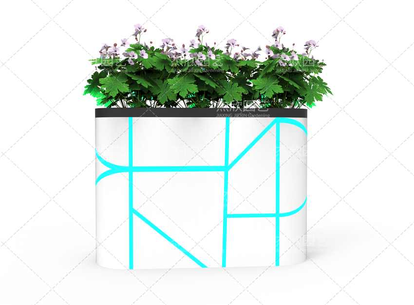 第二款,這款現(xiàn)代花箱第一眼看上去就充滿了科技感,用充滿現(xiàn)代科技藍(lán)色,簡潔的線條,完成了對科技感的闡釋。