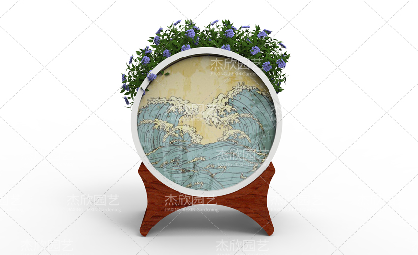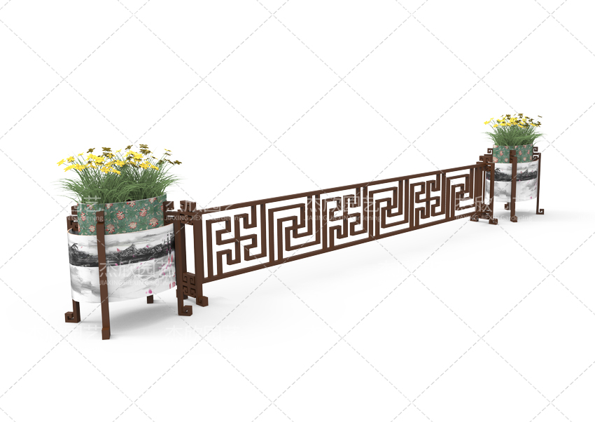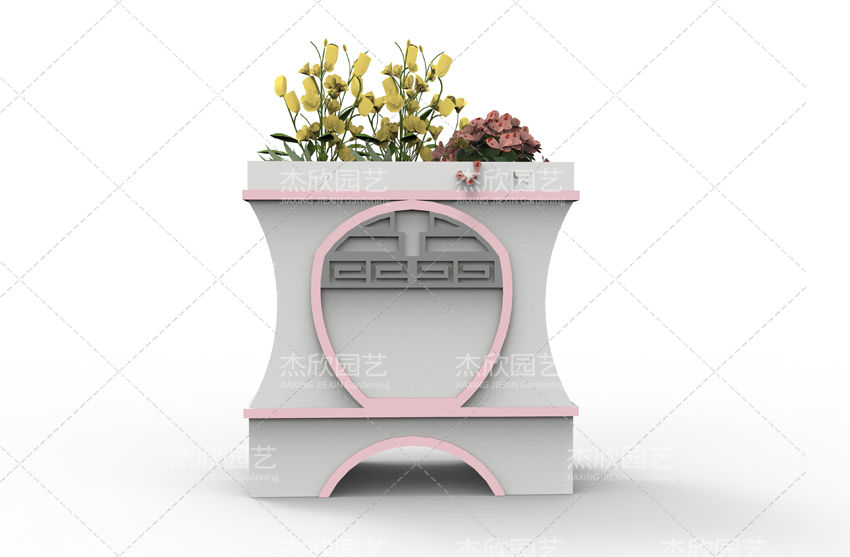 大鼓造型、古典紋樣構成了花箱的古典風格。水墨裝飾畫更將古典風格發(fā)揮到唯美境界。國畫的濃淡、疏密,意境悠遠。水墨印象花箱,還融入了繽紛的色彩,使得花箱整體美觀提升。